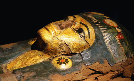 A group of archaeologists has discovered a new tomb in the Egyptian desert. They carefully open the hidden entrance, climb through several rooms filled with ancient treasures, until they arrive in the burial chamber. The sarcophagus is still sealed and contains the mummy of a Pharaoh.